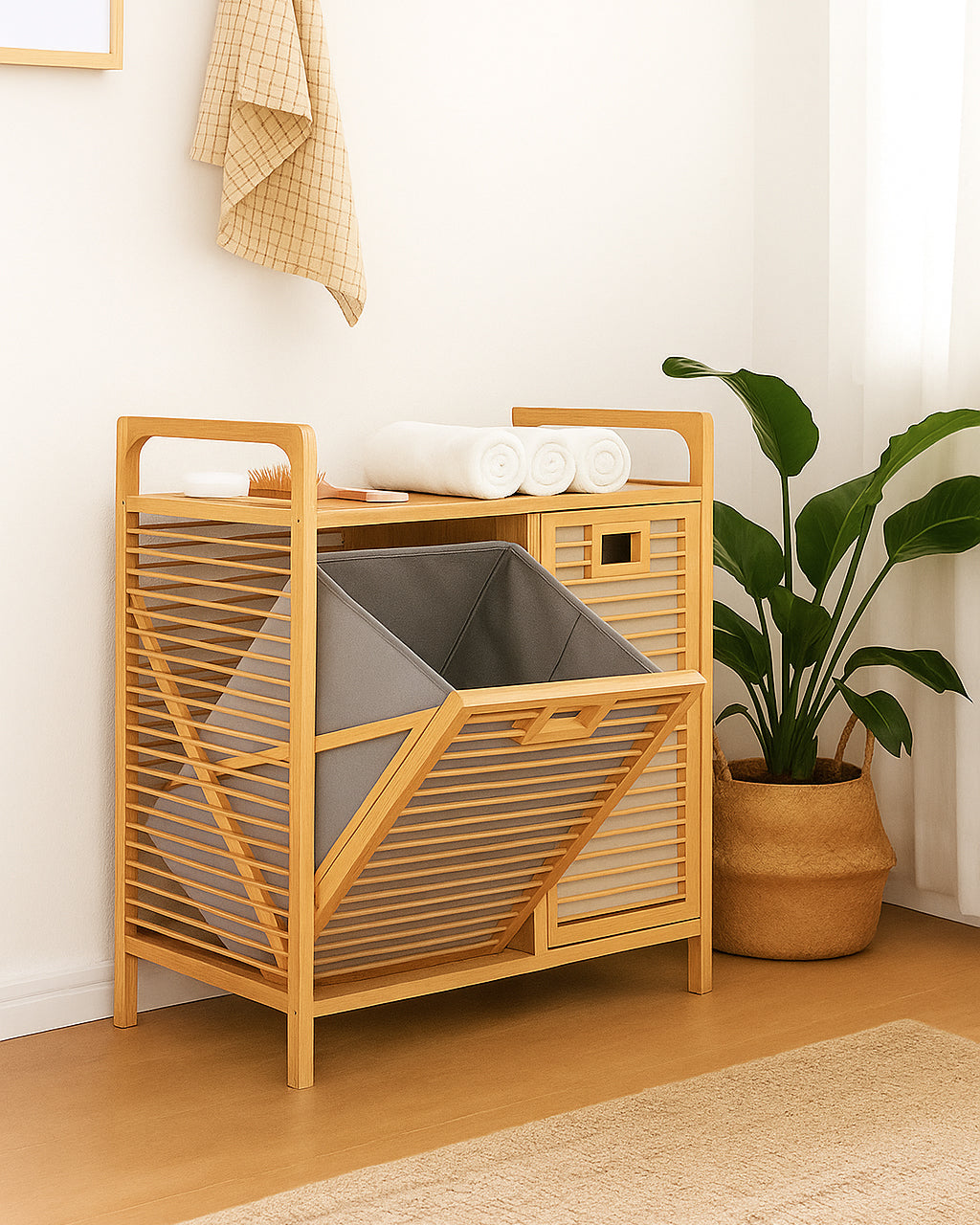 Bamboo Double Door Laundry Basket with Lined Bag Storage - Clothes Basket