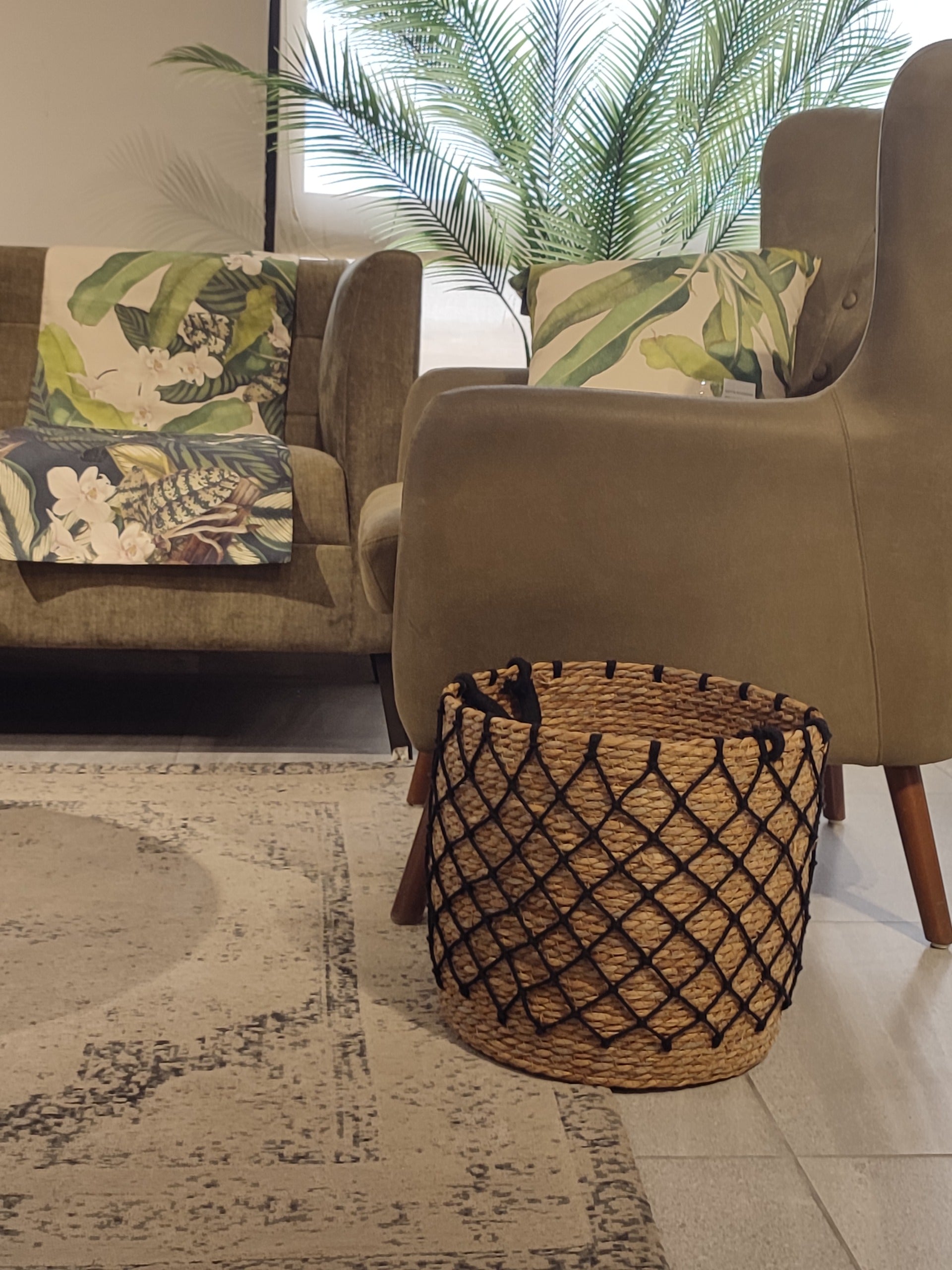 This Black Rope Basket is a stylish storage solution for any room. Made with durable black rope, it is both functional and decorative. With a sleek design and ample storage space, it is perfect for organizing and decluttering your home. Add a touch of elegance to any living space with this versatile basket.